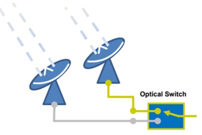 The ViaLiteHD Optical Switch has been designed specifically for fast switching between local and remote locations in Ka-Band satcom diverse antenna applications. This system uses ViaLiteHD Long Distance products.