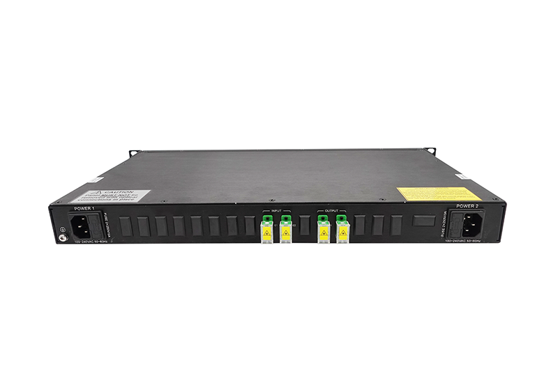 The 2×2 switch allows the user to switch system configurations between local and diverse sites. It can also feed off-air optical signals into a monitoring receiver when they are not in use. This allows the user to have an alarm status of their off-air channels, improving system confidence and availability. Standard 2×1 switches are also available.