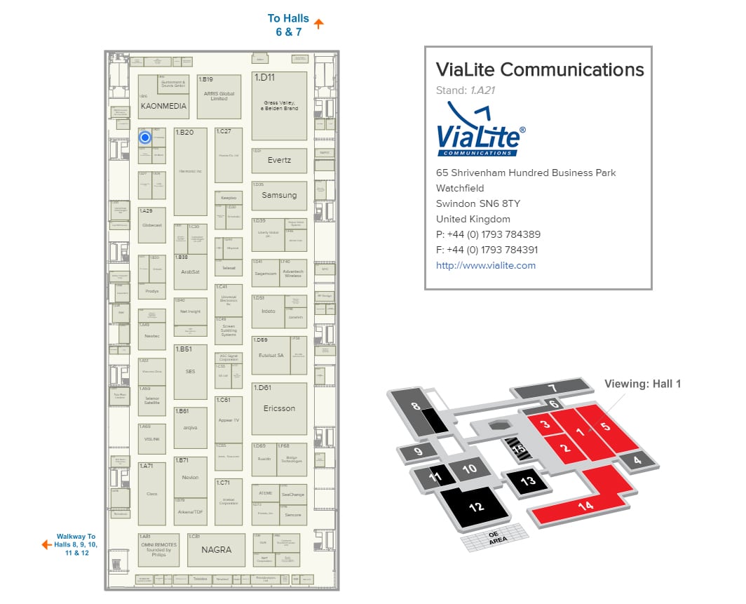 IBC is held at the RAI from 8-13 September (the exhibition starts on the 9th) and attracts over 55,000 attendees, from more than 170 countries.  ViaLite will be in hall 1 on stand A21 (1.A21), retaining their stand position from 2015.  Spanning 15 halls, IBC addresses the creation, management and delivery of electronic and media entertainment.